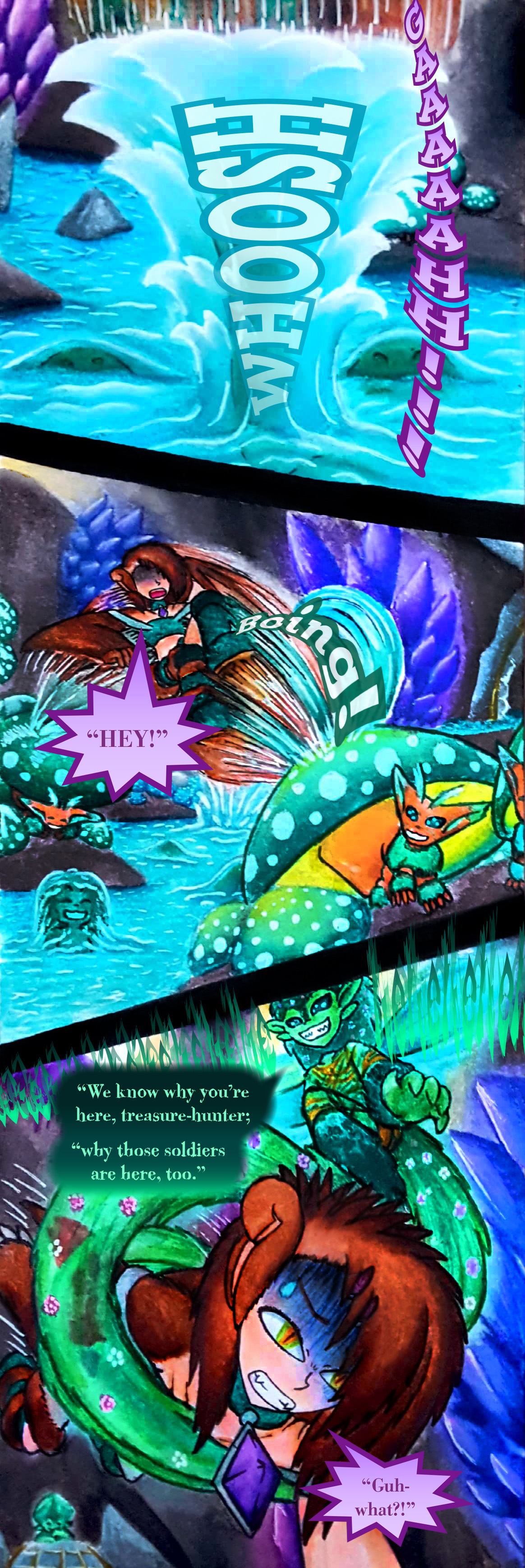Gelatinous amphibian humanoids that hide in small bodies of water - where they appear almost invisible. They cover themselves in a bubble of water when they surface, which engulf anyone that attempt to touch them. They can even use it to flop across the land for a short time, but tendt to stick to the water.